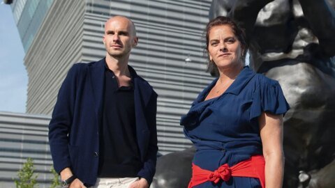 Tracey Emin with creative director Harry Weller in Oslo with her sculpture The Mother, 2022 I began working with Tracey Emin at the age of 18 in 2009. My role