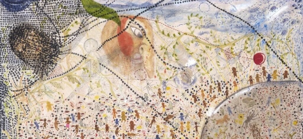 “Shika Thibault transforms her drawings using Pico-8 to create video games, while Haris Abadi was inspired by children’s illustrations to create his video ABC Atas Pasar. In Chang Yoong Chia’s Quilt of the Dead, an ongoing collaboration conceived as a way of remembering the deceased, he embroidered, freehand, hundreds of portraits of the departed onto pieces of cotton.”