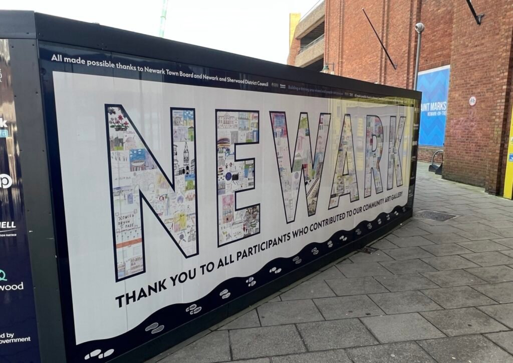A piece of artwork that features more than 160 drawings from Newark residents has been installed as part of the construction wall around 32 Stodman Street in the town centre.