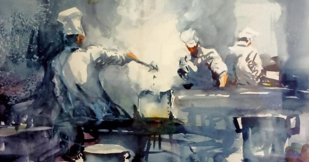He paints in watercolour, acrylic, goache, oil and also digitally, and has painted several book covers for science fiction and fantasy novels.