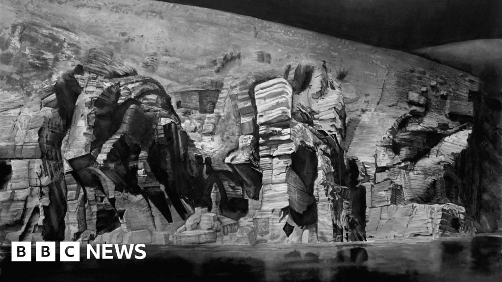 He said he had been inspired to create the drawing after a boat trip to see basking sharks off the Manx coast with friends, during which he took a number of photographs of the coastal rock formations.