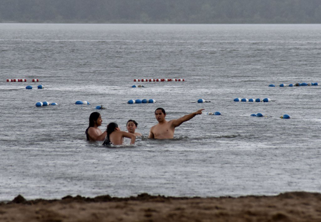 A group of four swim at Kingston Point Beach Friday afternoon, June 7, 2024, when it begins to rain. (Tania Barricklo/Daily Freeman)