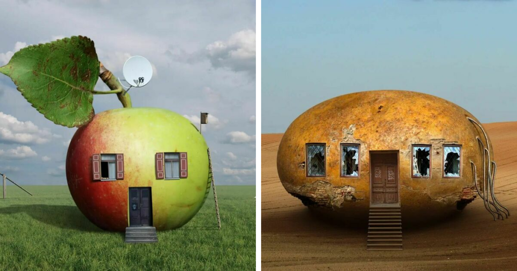 We were wondering how Ceslovas conceptualizes and creates his unique architecture made with fruits and vegetables and what is the creative process behind these incredibly realistic yet fantastical images.
