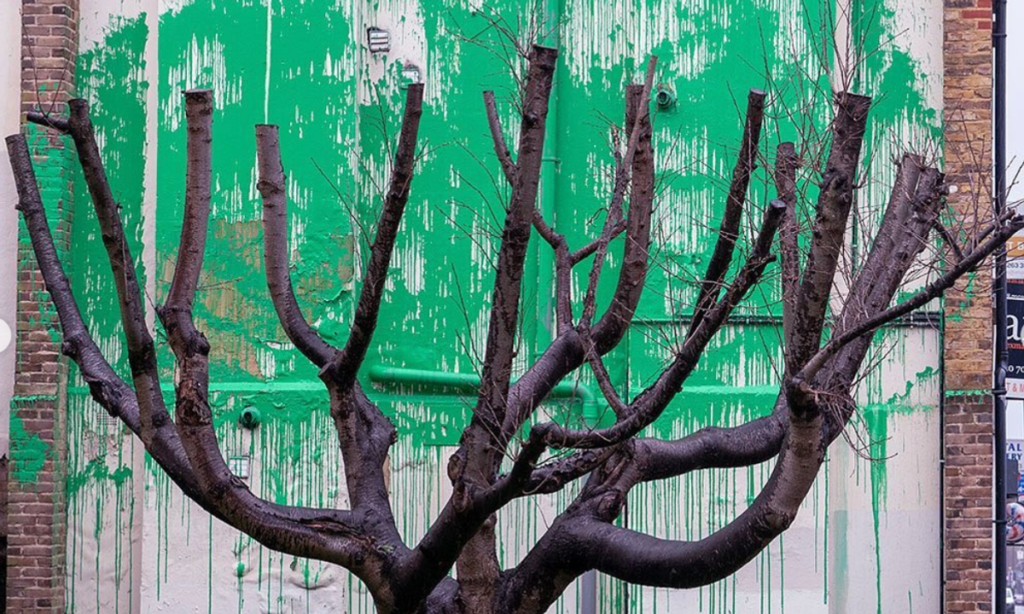 The British street artist Banksy has confirmed he is behind a new and somewhat cryptic mural painted in north London over the weekend—of a woman holding a pressure washer who appears to have sprayed green paint up the side of a block of flats. Painted on a dilapidated wall on Hornsey Road in Finsbury Park behind a recently pollarded tree, the green paint makes the barren branches look as if they are springing into life.
