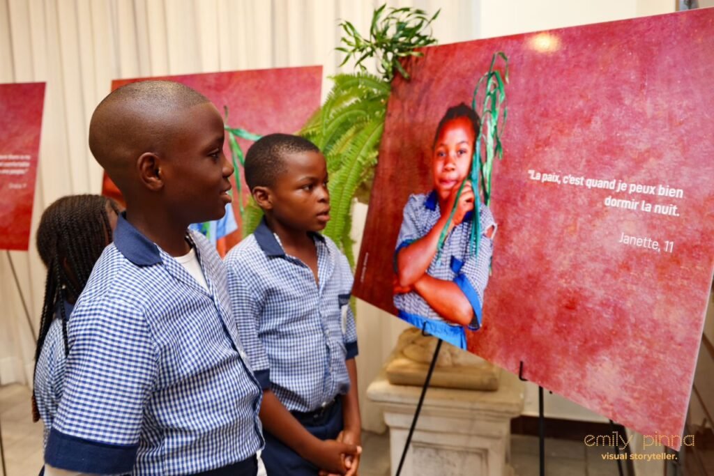And so, the Planting Peace exhibition is really based on that peace building concept. It’s about instilling, seeding, peace in the hearts and minds of children because you have this unique moment where these children now are going to school together. And, obviously, the kids from the conflict zones are very traumatized. And if there is no mechanism, no help for them to overcome the trauma and also prepare the host community kids for this specific situation, it would remain a tenuous situation. And it was from the Mont Febe Hotel that the Apostolic Nuncio invited me to do the exhibition at the Nunciature as well.