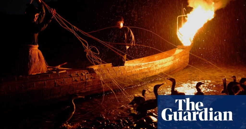 This 1,300-year-old fishing technique consists of swinging a basket of flames over the river to wake the ayu river fish, who dart away from their resting spots and give the birds a chance to catch them and then release them into a bucket with the help of the cormorant fishing master, or usho. Climate change is bringing heavy rains and a need for anti-flood barriers on a once calm river, with smaller rocks and sand filling the river bottom and obstructing the larger rocks that form ayu river fish habitats