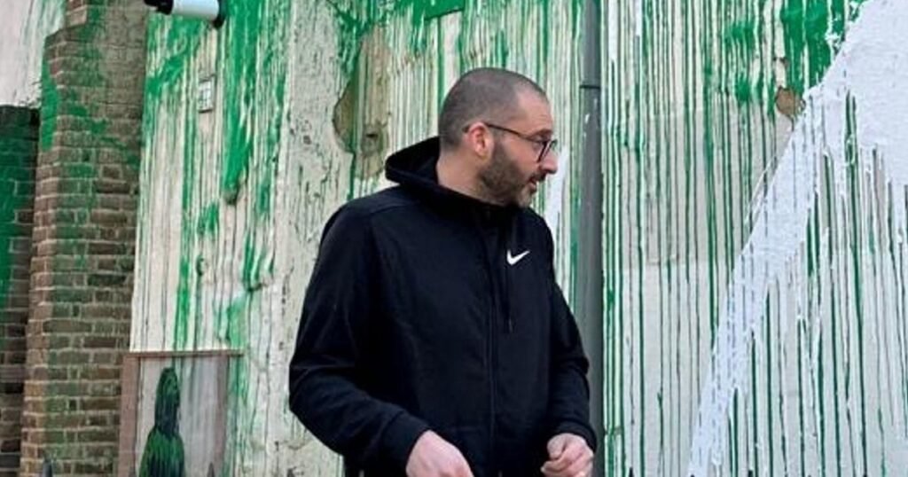 “I quickly focused on taking pictures of him he looked at me with an expression which seemed to say ‘I’ve have been spotted’. He quickly left the scene in a black van parked near the mural.”