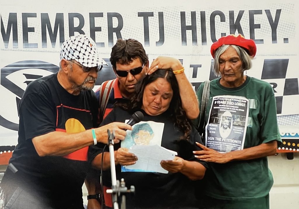Painter Blak Douglas also had his camera out in Redfern – or Dreadfern as he types it as he records TJ Hickey’s loss ten years on and prime examples of local police harassment. Interestingly, his images appear only postcard size and appear as fridge magnets on a vintage, 1950s HMV refrigerator – perhaps the model he himself used in Redfern during 17 years residence.