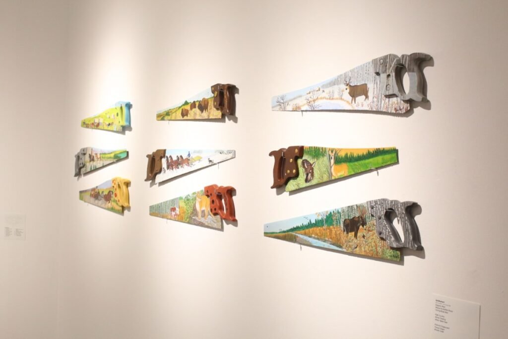 “The clear coating enhances the colour on the painting plus it also protects them. Any of those saws hanging there you could probably put them outside for 2-4 years … and never worry about them being out in the weather because they’re protected,” said Morhart.