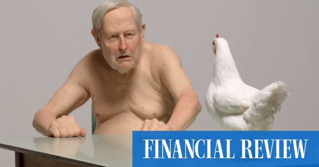 The tiny old woman is curled in a foetal position, engulfed in hospital blankets, wisps of grey hair splayed across a pillow. In the soft light, her lips slightly parted, she seems about to breathe her last. Walk around the tiny figure atop her plinth in the Grand Courts at the Art Gallery of NSW, and you would swear her eyes open ever so slightly.