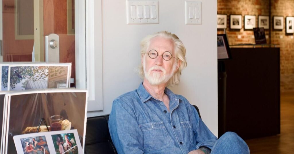 Alongside Garey’s paintings in the exhibit are a collection of photographs of him taken from the early 70s to 2023 by his friend and colleague Sidney Glass. Glass studied alongside Garey in Steven Gately’s class and the two have remained friends.