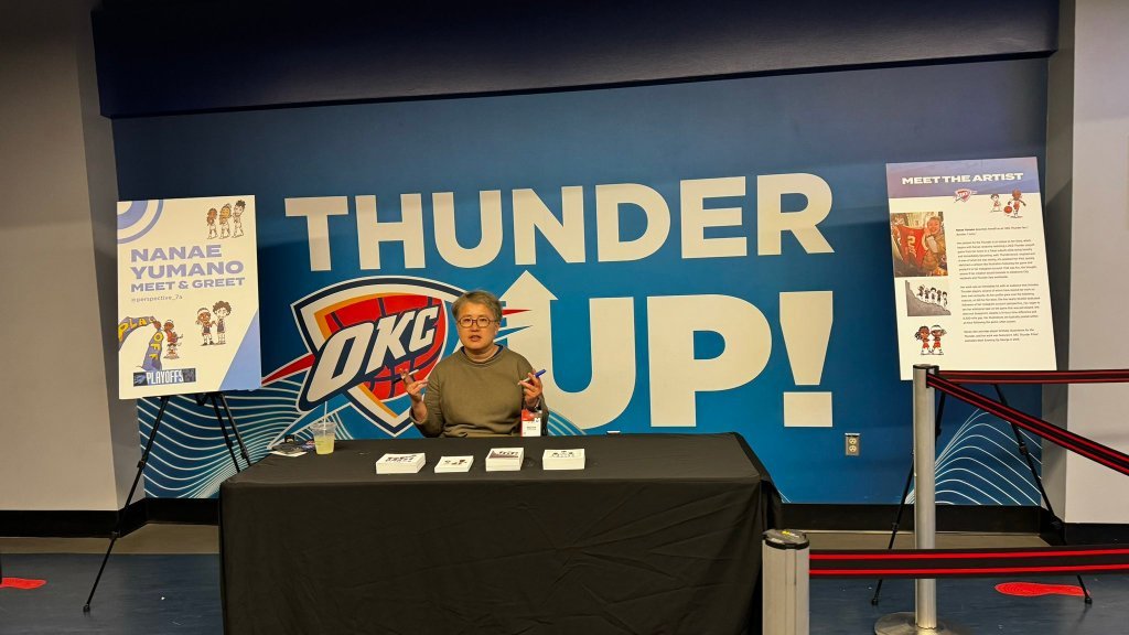 As the Thunder hosted a pregame festival at Scissortail Park before Game 1, Yamano had the chance to meet several local people who’ve been a fan of her work with a meet-and-greet. As each person expressed their fondness for her work, she learned that local fans’ passion extended beyond the court. It was a surreal experience for the 49-year-old to realize her influence over the rabid fanbase.