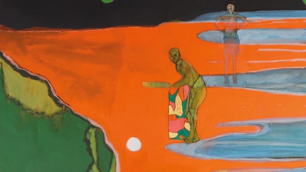 Hurvin Anderson, Skylarking, 2021, acrylic, oil on canvas, 2.5 × 1.8 m. Courtesy: © the artist and Thomas Dane Gallery, London; photograph: Richard Ivey
