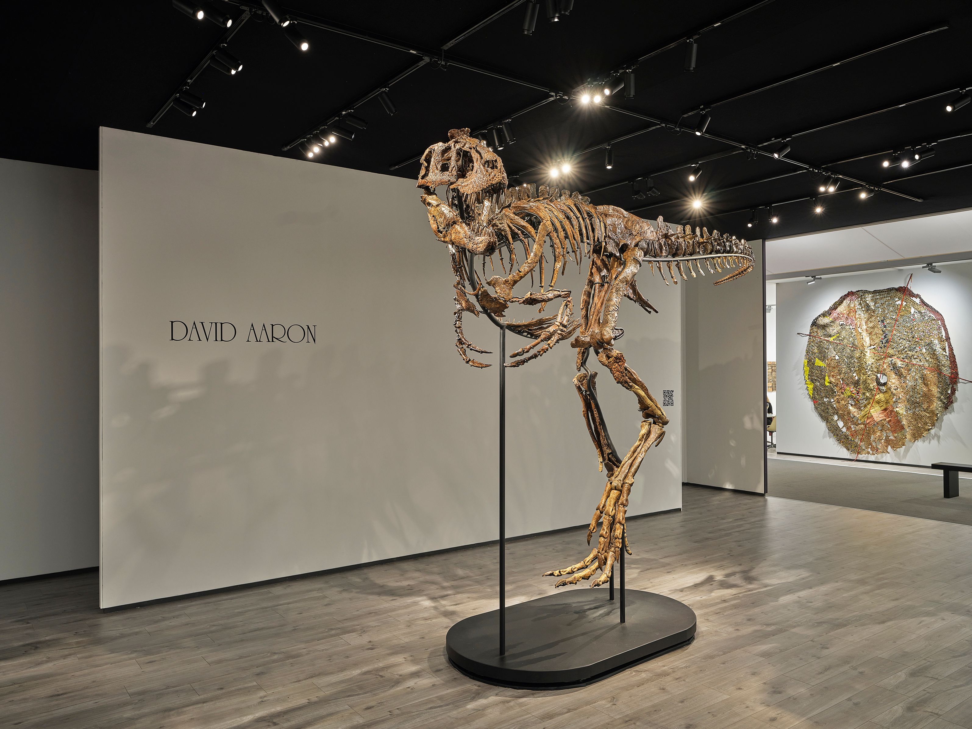 Chomper, the juvenile T. rex, travelled from Canada to David Aaron’s stand at Frieze Masters in 2023 Courtesy David Aaron