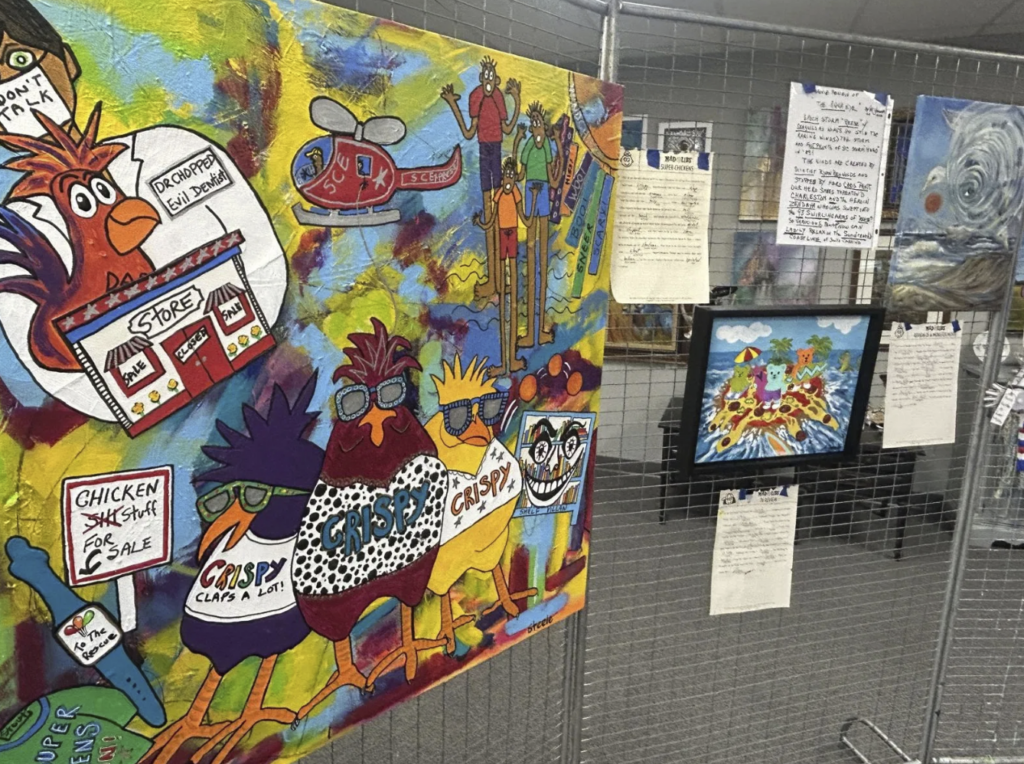 Artists filled out the comedic word game with nouns, verbs, adjectives and adverbs. Then, they brought their silly stories to life through art.