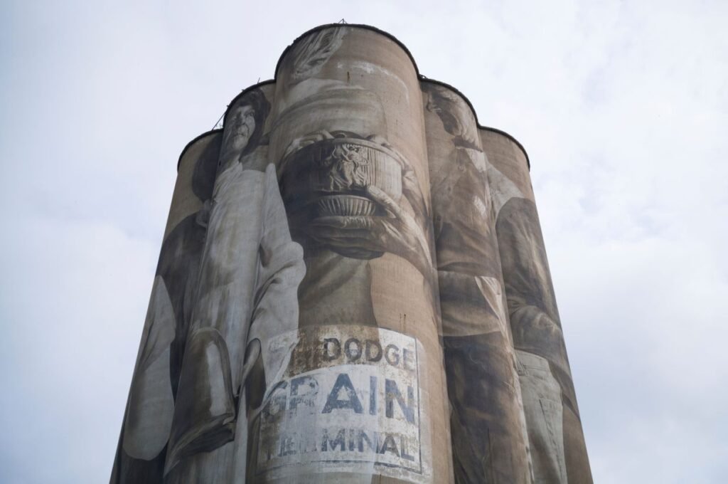 The work on the former Union Silos is van Helten’s latest effort to paint murals on a gigantic scale, with earlier projects on structures ranging from a dam in Australia to part of a former cooling tower at the Chernobyl nuclear plant in Ukraine. Although he has created murals throughout the world, grain silos in the US Midwest have been among his most frequent sites.