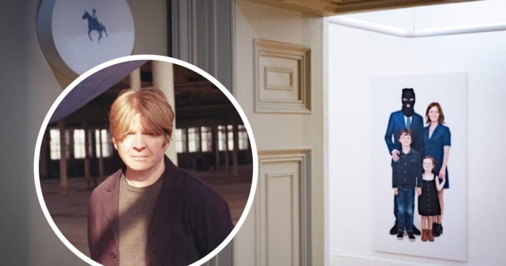 The painting nominated for the award is a family portrait, with the father wearing a balaclava.