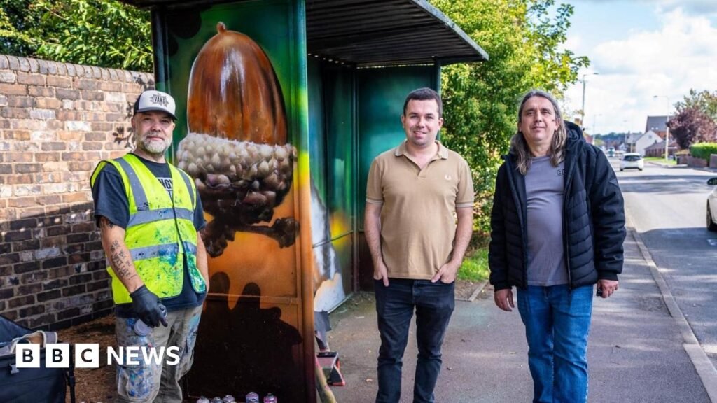 An art project has transformed four bus shelters with designs that celebrate a town’s heritage and local nature.