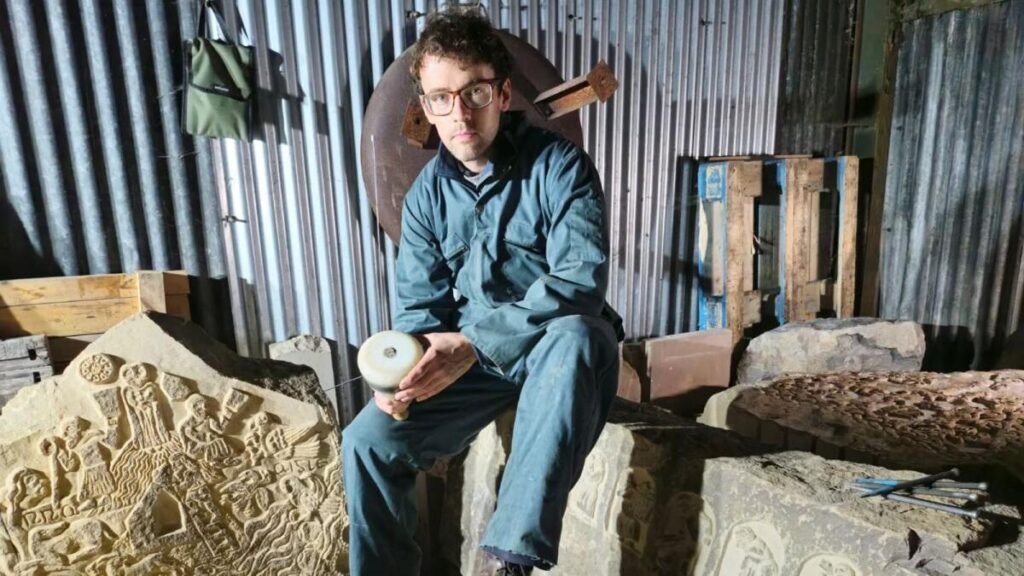 James carved the sandstone blocks with traditional tools over the course of a year, taking inspiration from existing medieval stone carvings at sites across Mayo such as Turlough, Straide, Ballintubber, Inishmaine and Cong.