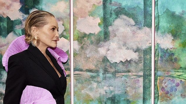 Sharon Stone has achieved her lifelong ‘dream’ by being nominated for a prestigious art award after a near-fatal stroke led to visual distortions (pictured with her artwork)
