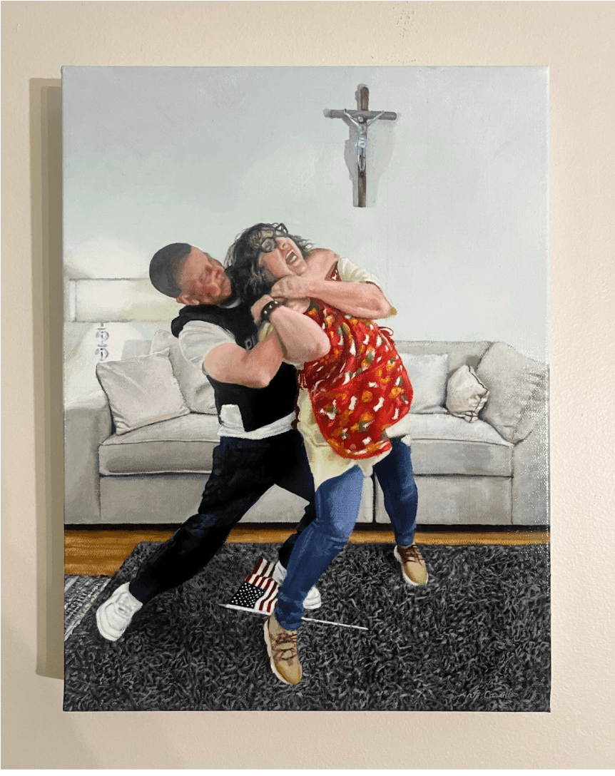 My Experience y La Tuya is artist Arthur Carrillo’s title for his solo October 2025 exhibition at the Jean Deleage Art Gallery in Boyle Heights, Los Angeles, California.This exhibition comes at a historical moment of conflict and tension amongst communities and countries. Carrillo’s photorealism paintings are his visual annotations, noted with brush and paint on canvas of the ordinary turned into exceptional conversations of living energy. Each painting thrives with intricate detail. He maps his local geography and gives special attention to the cultural assets within the Latin@/Chican@, Mexican community. Carrillo chose a bilingual title for his exhibition. He wants to “Reflect the two worlds I culturally inhabit and the overlap between them both.” His paintings celebrate as well as render the fatal absurdity of power as a trophy to subdue the undesired and reward obedient followers of power.