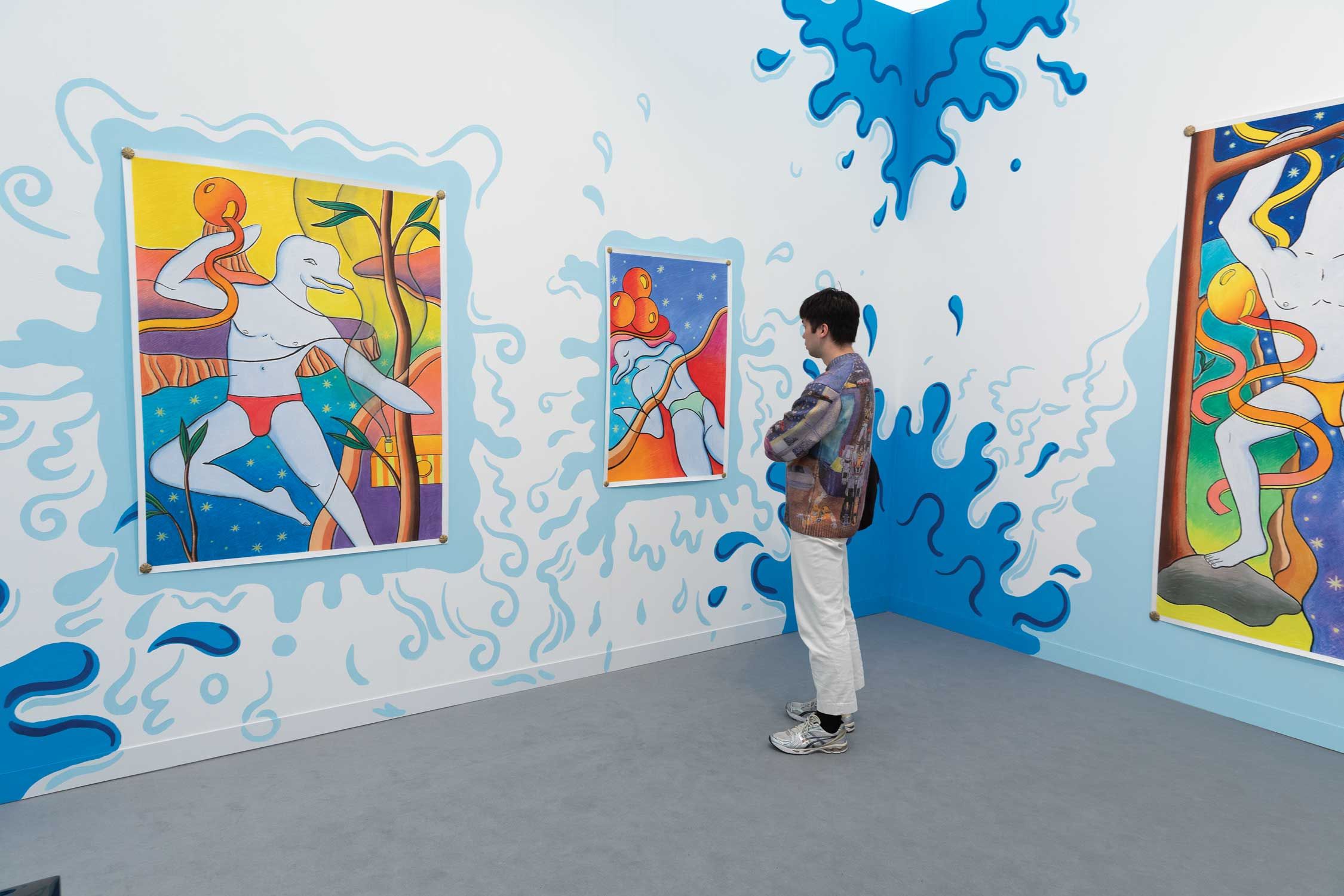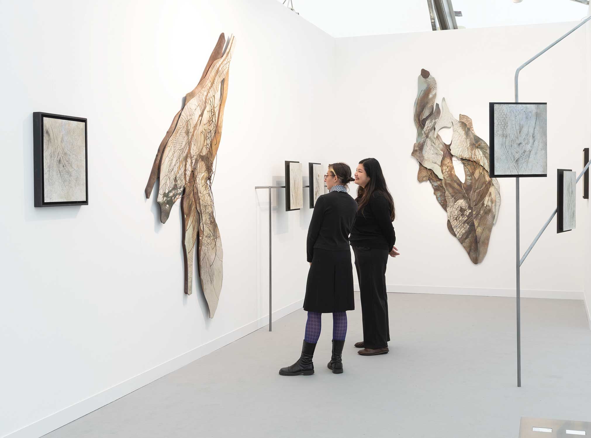 In a fair awash with painting, Focus—the section dedicated to galleries up to 12 years old—is an invigorating burst of variety and imagination. The six stands featured here include works made in materials from glass and tar to pastel, etching, found mannequins, calico and plastic, in which painting occasionally insinuates itself. The subject matter, too, is diverse, but if there is an insistent theme it is—not unexpectedly for predominantly younger artists—one of climate breakdown. Here are the standout booths of the Focus section.