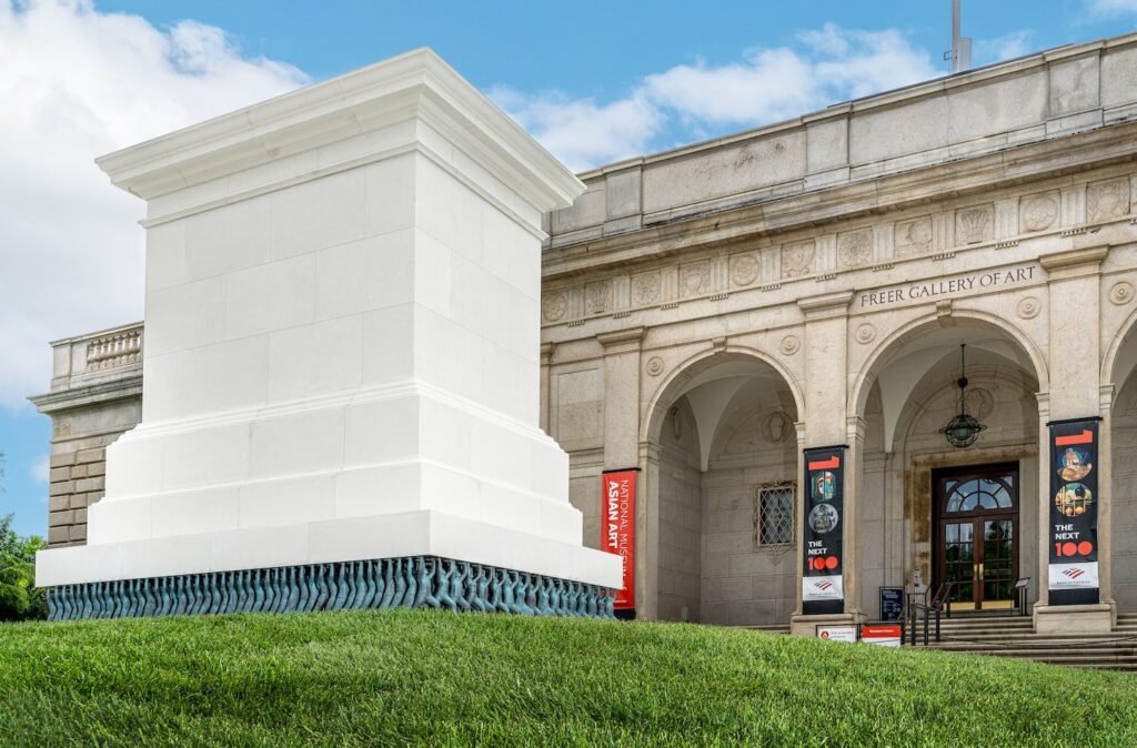 Instead, “Public Figures” is inverted: The sculpture standing outside the National Museum of Asian Art puts the figures on the bottom, underneath the plinth. Not one but scores of sculpted figures appear to support the pillar, an entire polity holding aloft the notion of monumentality.