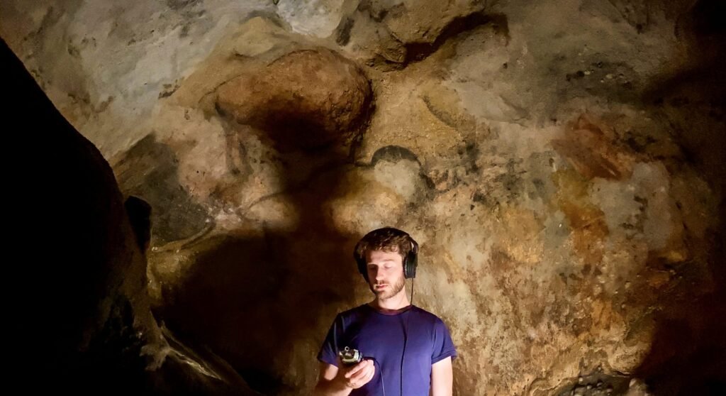 Filming Resonance Cave featuring Rufus Wainwright in the Palaeolithic caves of Dordogne in 2023.