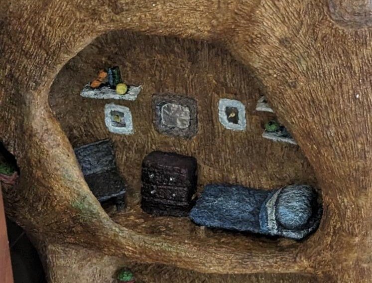 Other samples of Walker’s works are at the LMC as well, including ‘Beaverly’, the Canadian beaver crafted from an exercise ball and a smaller fairy house which is in the library.