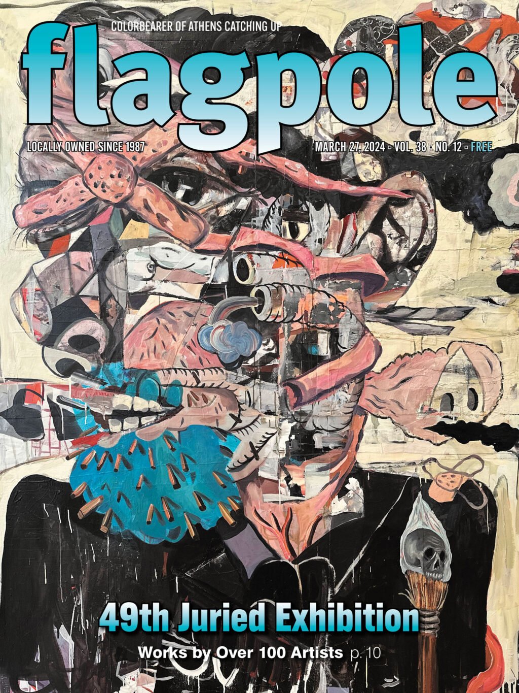 On the cover of Flagpole this week, R.B. Pruett’s portrait “The Painter” nods to the idea of an artist as a conduit. Pruett, who received an MFA in painting at East Tennessee State University after earning BFA degrees in both art education and painting and drawing at the University of Georgia, uses a unique process of “cannibalizing paintings” through which pieces of “failed” paintings are collaged into new works full of layering and texture.