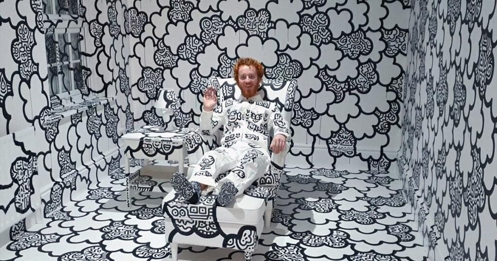THE man who bought a big house, painted it white, then doodled over everything. Walls. Floors. Ceiling. Duvet cover. Toaster. Everything.